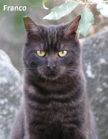 negativ Geboren ?. Giuglio ist ein seltener Gast in der Kolonie, um so mehr haben wir uns gefreut das es uns gelungen ist ihn zu fangen um ihn kastrieren zu lassen. Leider kann bei seinem Bluttest heraus, das er FIV positiv ist. Wir haben ihn wieder in die Freiheit entlassen und ab und zu gibt er uns noch immer die Ehre. 09.2014 Guiglio haben wir auch nicht angetroffen. 05.10.14 auch Guiglio ist endlich eingetroffen, scheu wie immer, aber in gutem Zustand 14.02.15 Virbac (Flohmittel) verstorben am 22.01.2016, keine äußerlichen Verletzungen erkennbar |