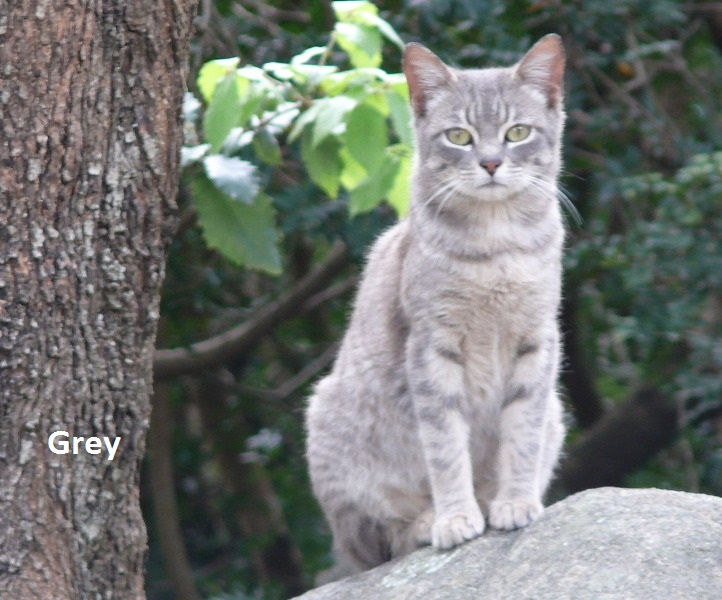 2014 kastriert, FIV/FeLV Test negativ /Kombiimpfung FeLV geboren Frühjahr 2012. Grey ist ein wunderschöner, total ausgeglichener und verschmuster Kater. Seine Tochter haben wir im Winter verletzt gefangen, sie hatte einen Beckenbruch und wurde in der L.I.D.A. therapiert. Von dort aus hat sie ein neues Zuhause auf Sardinien gefunden, im dem sie sich sehr wohl fühlt. 09.2014 Grey ist ein stolzer schöner Kater geworden. Er läßt sich problemlos anfassen. 14.02.15 Virbac (Flohmittel) Herbst 2015 Grey ist nun ständig auf P11 anzutreffen 31.01.2016 frontline ist nur noch an p11 anzutreffen |