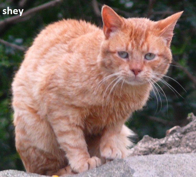 Geboren ?. Die rote Eminenz in der Kolonie. Er hält sich immer im Hintergrund auf und ist uns leider beim Kastrieren auch nicht in die Falle gegangen. Er ist sehr scheu und wir sehen ihn immer nur als roten Schatten zwischen den Büschen. 09.2014 nicht mehr ganz so scheu frißt er mit den anderen. Seine alte Verletzung am Maul scheint sich nicht verschlimmert zu haben. 09.02. endlich ging er in die Falle, er pendelt zwischen p3 und p9. 07.03. humpelt, rechter Hinterlauf |