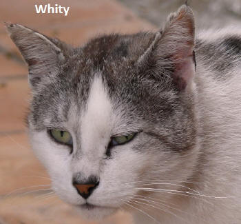 21.01.2014 kastriert, FIV/FeLV negativ /Kombiimpfung FeLV geboren ?. Whity ist der ruhende Pol in der Kolonie, er hat eigentlich einen Besitzer fühlt sich aber in der Gesellschaft der anderen Katzen scheinbar wohler als Zuhause. Im letzten Jahr hatte er eine schlimme Entzündung durch eine Bißverletzung an der Schwanzwurzel, welche ganz dick geschwollen und vereitert war. Das haben wir mit Antibiotika wieder prima in den Griff bekommen. 09.10.14 Whity haben wir leider noch nicht angetroffen. 04.11. Whity ist mit Halsband und prima Zustand am Platz aufgetaucht. 14.02.15 Virbac (Flohmittel) Herbst 2015 Whity ist nun ständig auf P11 anzutreffen |